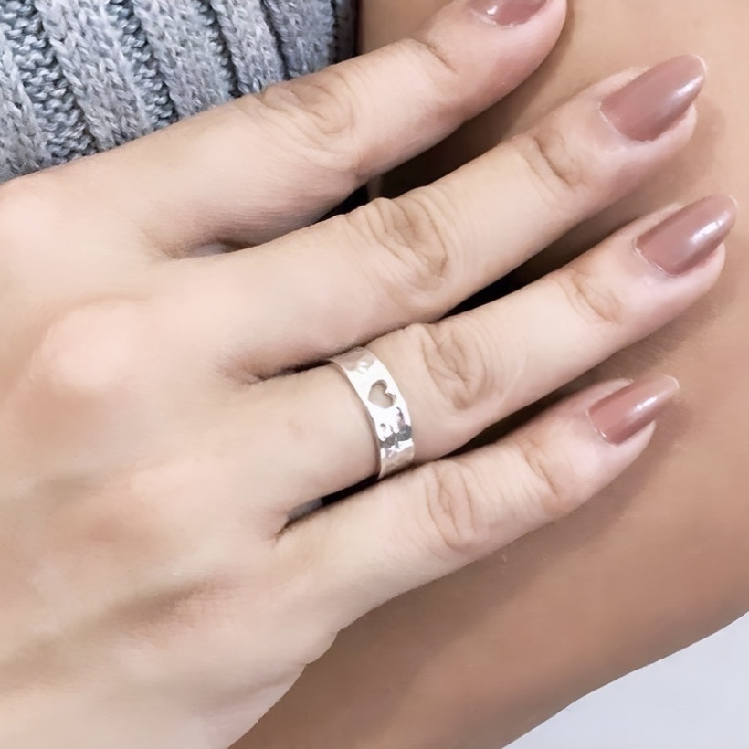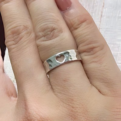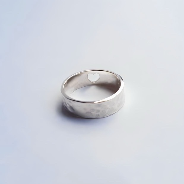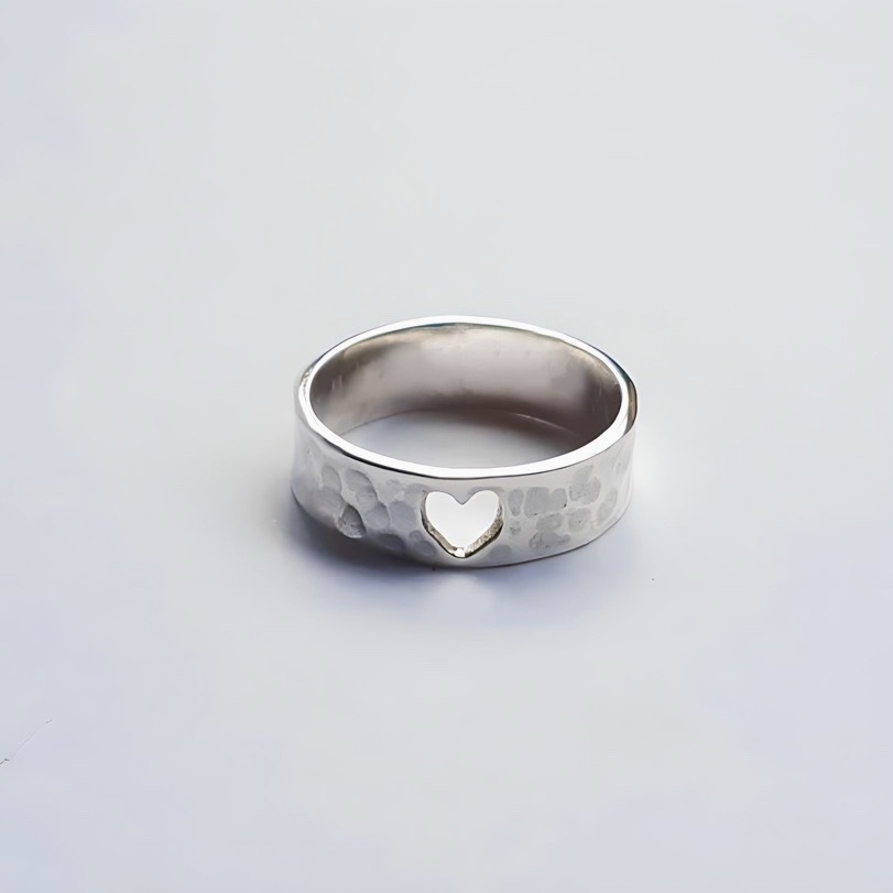 Anel Coração Vazado com aro texturizado confeccionado artesanalmente em prata 950.