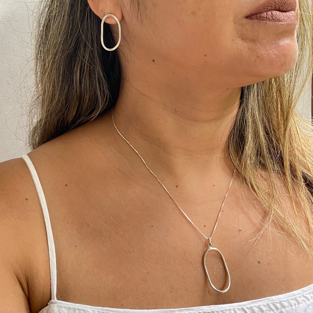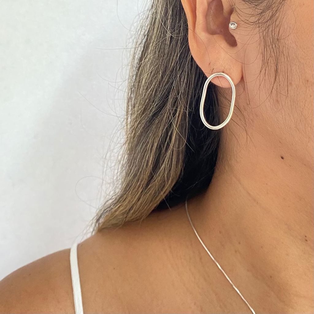 Brincos Oval confeccionados artesanalmente em prata 950.