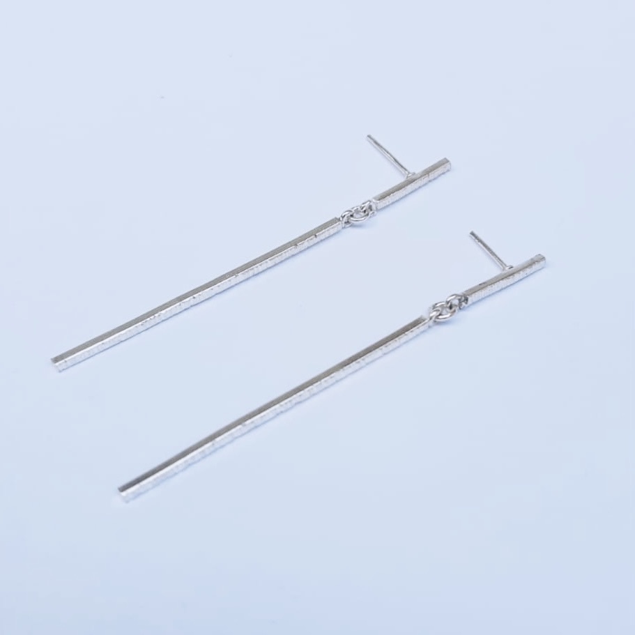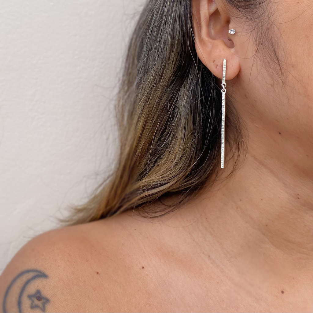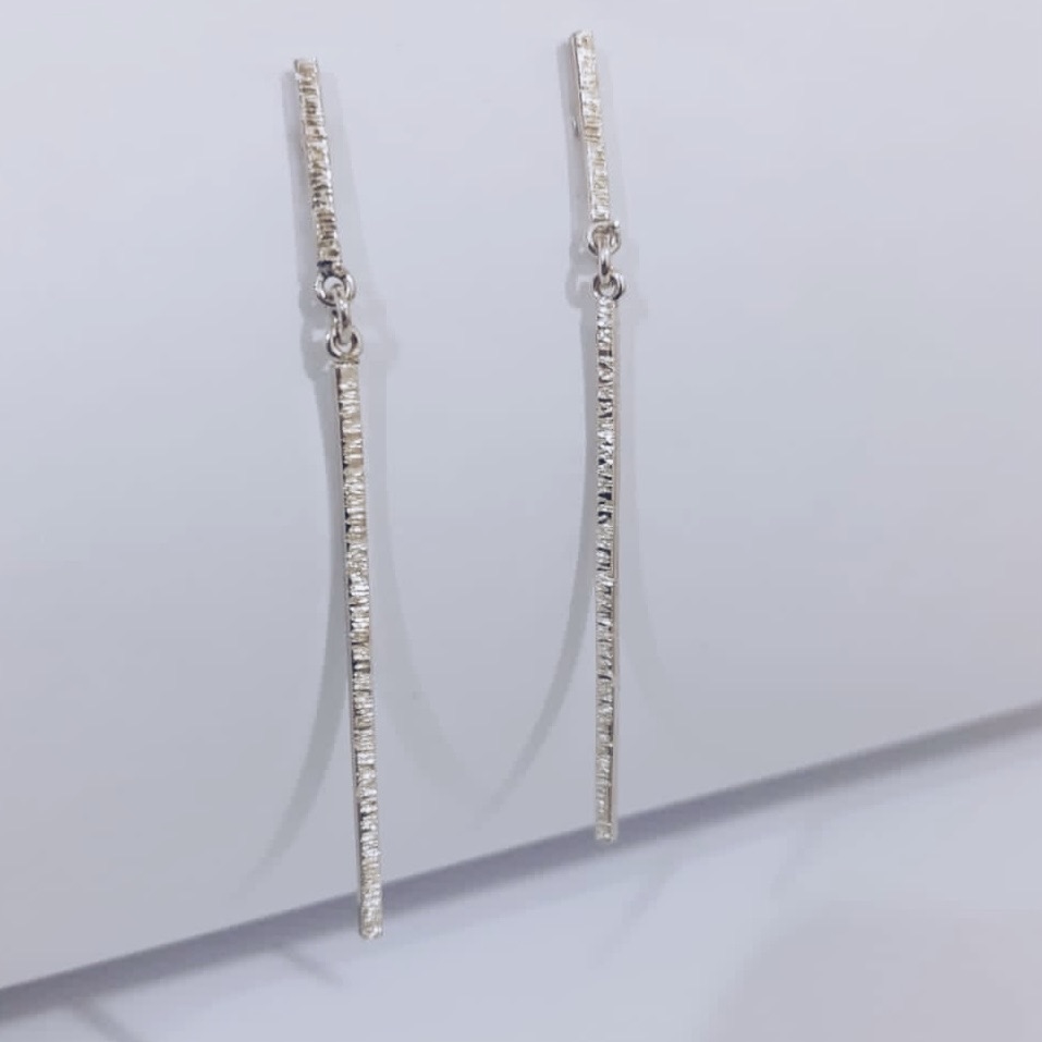 Brincos Palito com a parte frontal texturizada com tarraxa confeccionado artesanalmente em prata 950.